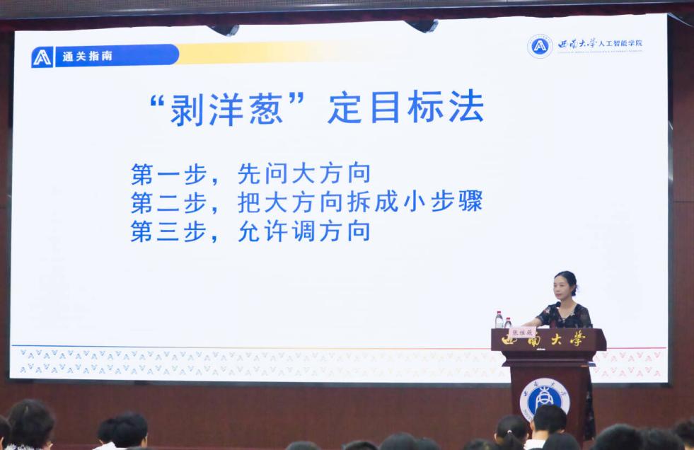 同日晚上,学院汪易玲老师为新生带来心理健康教育专题讲座。讲座以“扫雷”、“你比我猜”等破冰游戏开场,有效促进了同学间的熟悉与互动。汪易玲老师从人际交往、学习规划与学校心理健康资源三个维度展开讲解。她鼓励新生主动把握机遇,大方展示自我,勇于尝试并不怕试错,通过积极参与活动与真诚互助融入集体。在学习方面,她引导同学们认识到主动规划的重要性。汪老师还详细介绍了学校的心理健康资源与相关课程,帮助同学们学习如何洞察内心、理解自我,从而更好地与他人相处。最后,她祝愿所有新生能以积极的面貌享受大学生活,迎接未来的每一天。