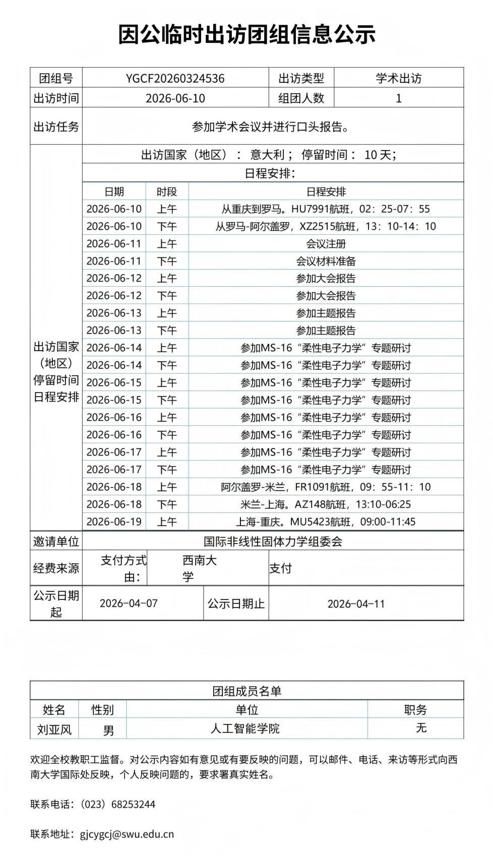 因公临时出访团组信息公示
