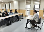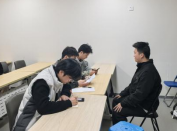 分享结束后,模拟面试环节正式开启。活动采用分组形式进行,每组由4名研究生同学担任“面试官”,严格按照真实复试流程,对考生进行中英文自我介绍、专业问答、综合面试等环节的全真模拟,为复试同学们高度还原复试现场。面试过程中,“面试官”们从考生入场礼仪、语言表达、专业素养、逻辑思维及应变能力等多个维度进行考察,并在每位考生面试结束后进行一对一点评,指出存在的不足并提出改进建议,确保模拟面试达到最佳效果。